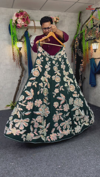 Faux Georgette Embroidered Lehenga with Sequins Work & Dupatta – Semi-Stitched Party Wear Set