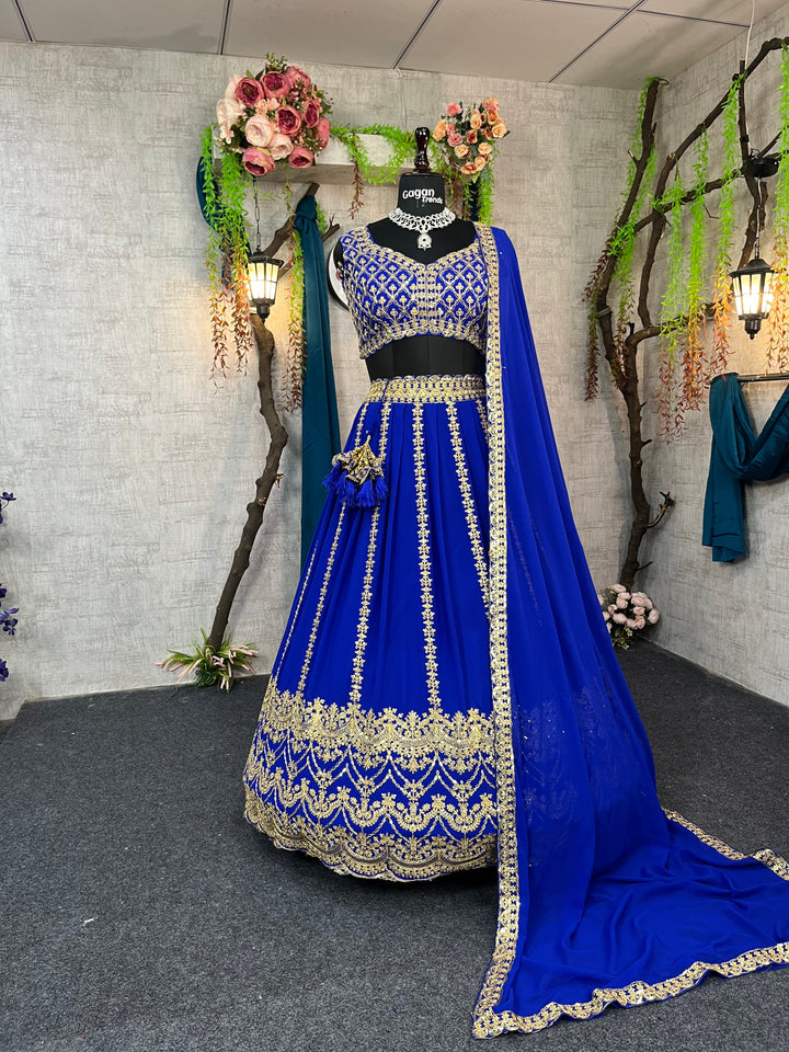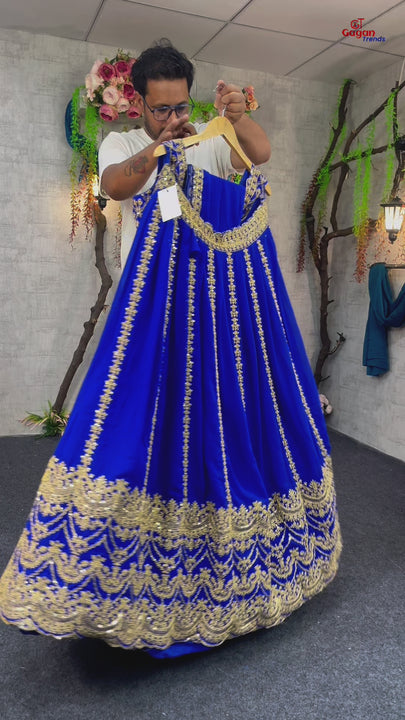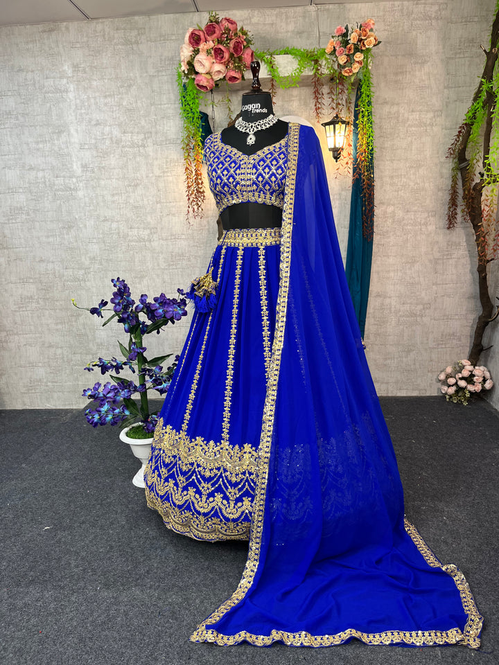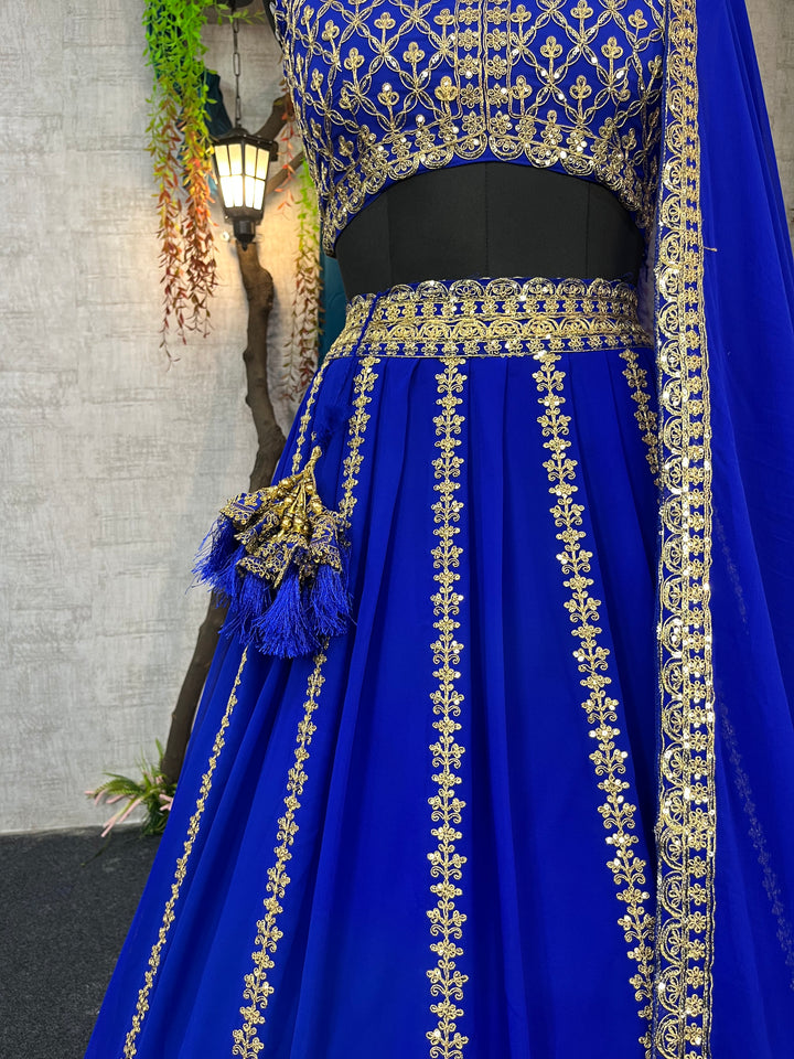 Faux Georgette Coding Sequin Embroidered Lehenga with Dupatta – Semi-Stitched Designer Partywear Set