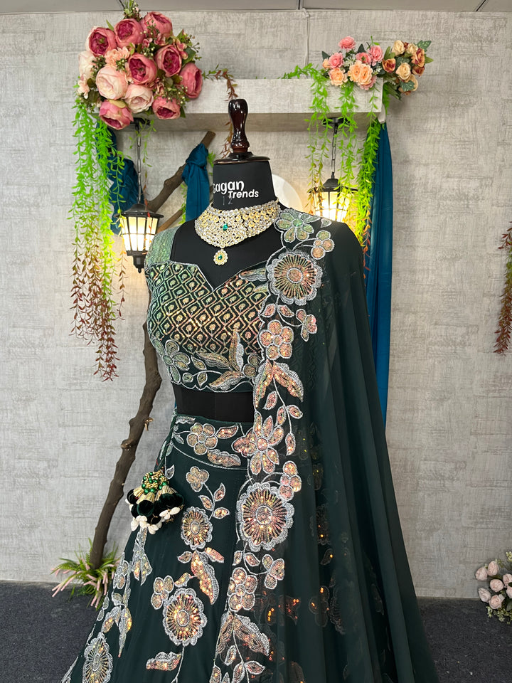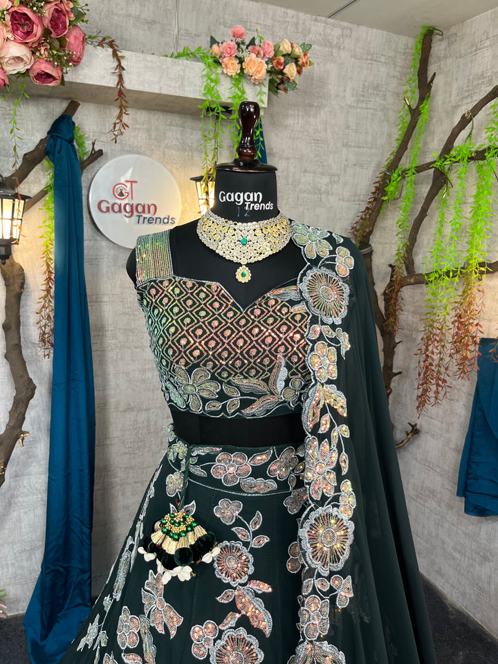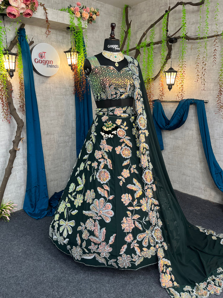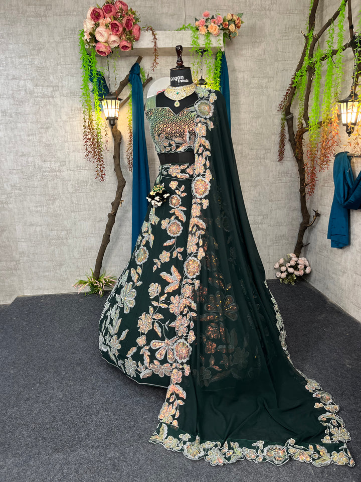 Faux Georgette Embroidered Lehenga with Sequins Work for Festive & Bridal Wear