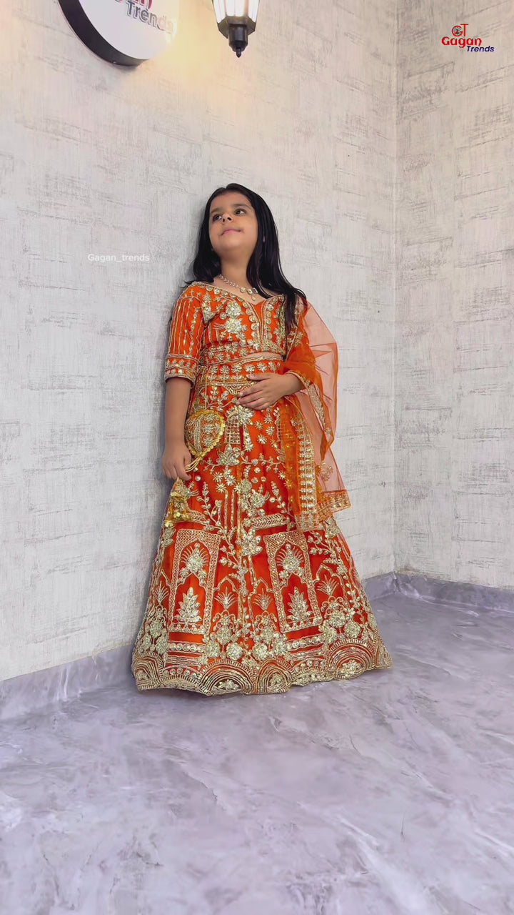 ✨ Let your princess glow in this vibrant orange soft net lehenga choli, beautifully adorned with delicate coding sequins embroidery. Perfect for weddings, birthdays, and festive celebrations. The set comes fully stitched for a flawless fit and effortless wear.