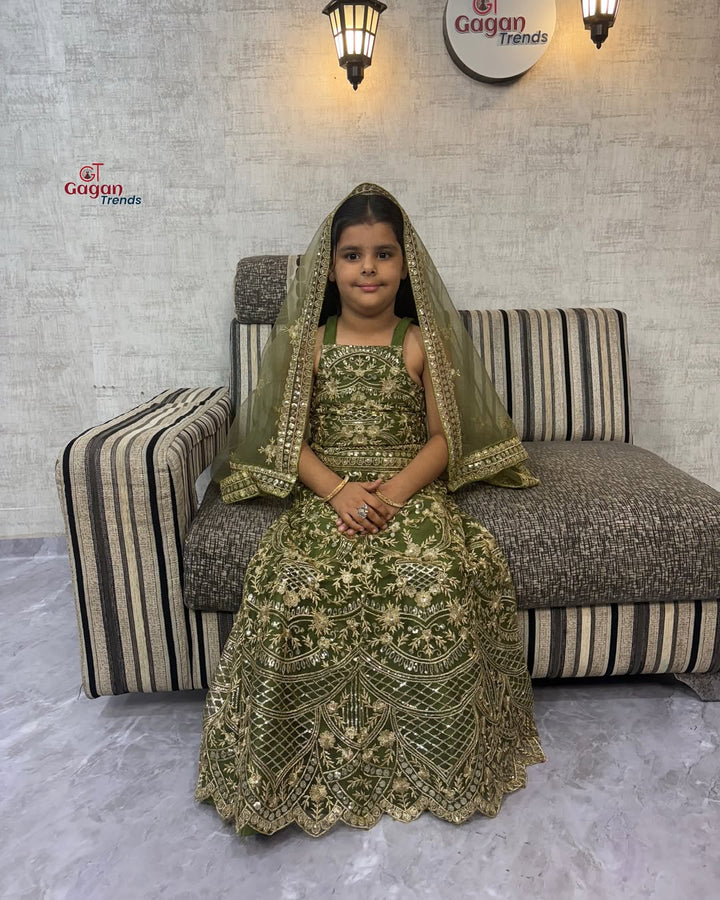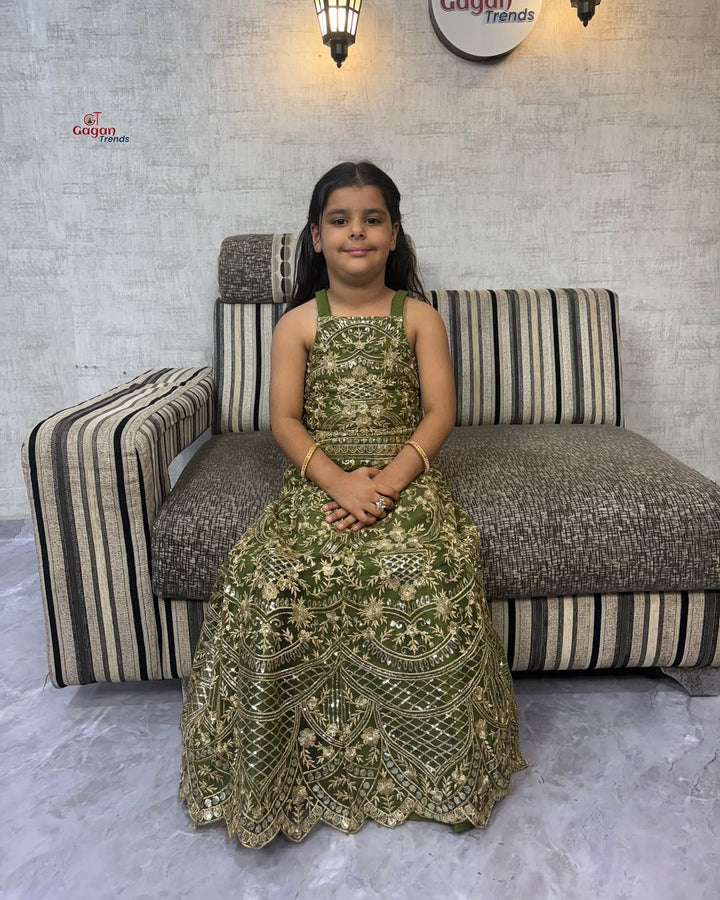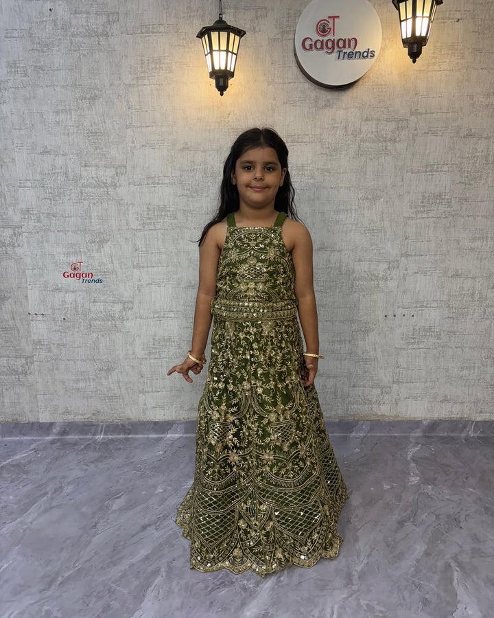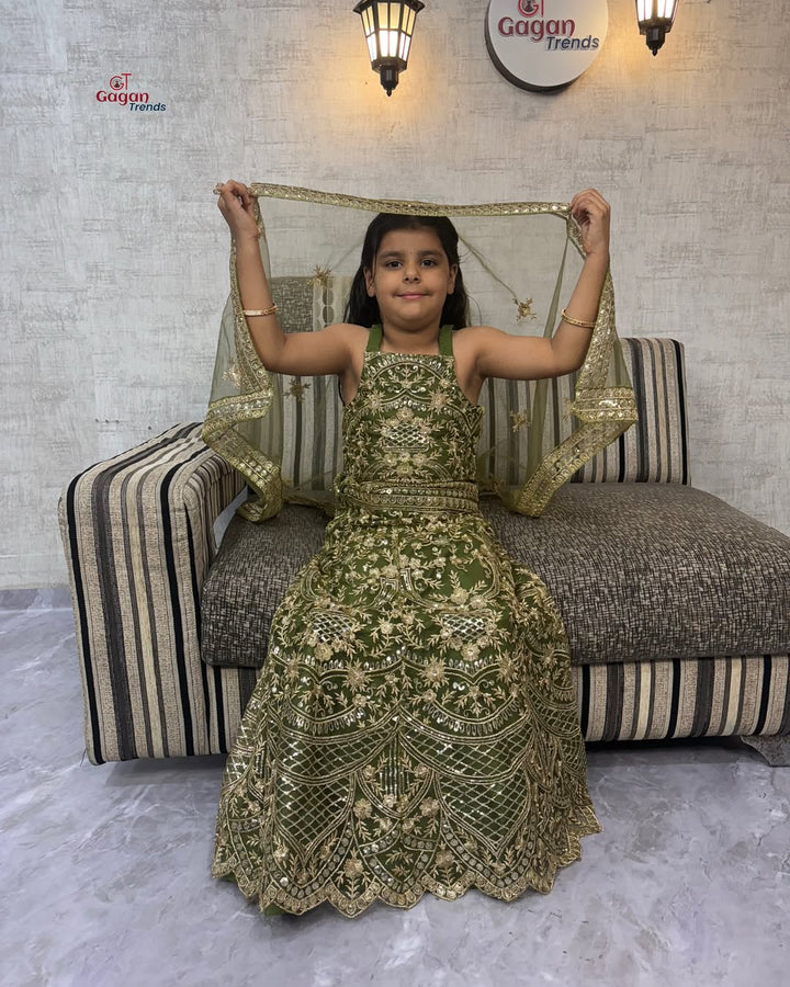 green Soft Net Lehenga Choli with Coding Sequins – Traditional Dress (0–18 Years)