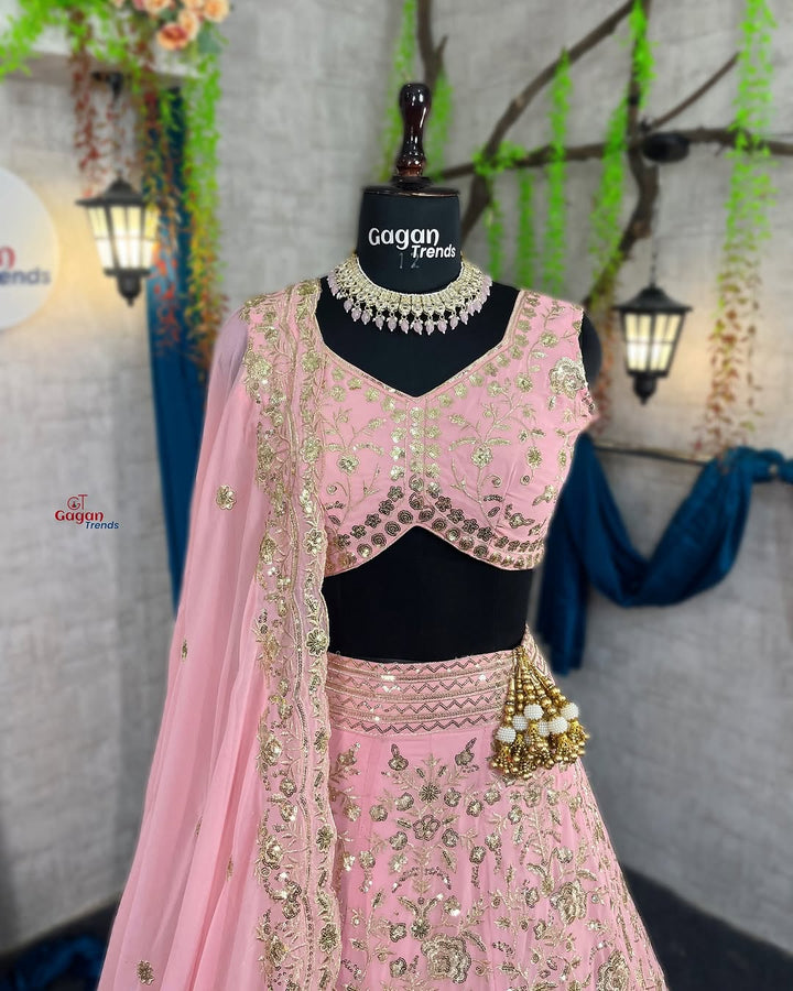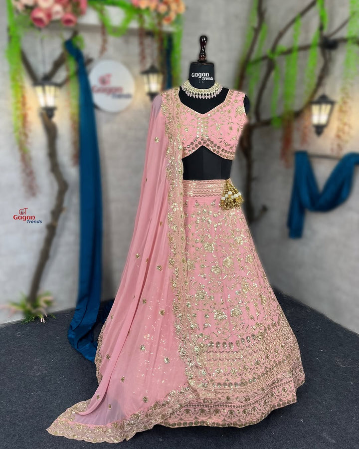 Gorgeous Faux Georgette Lehenga with Sequins Embroidery – A Must-Have for Festive Glam!