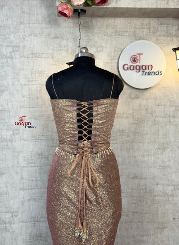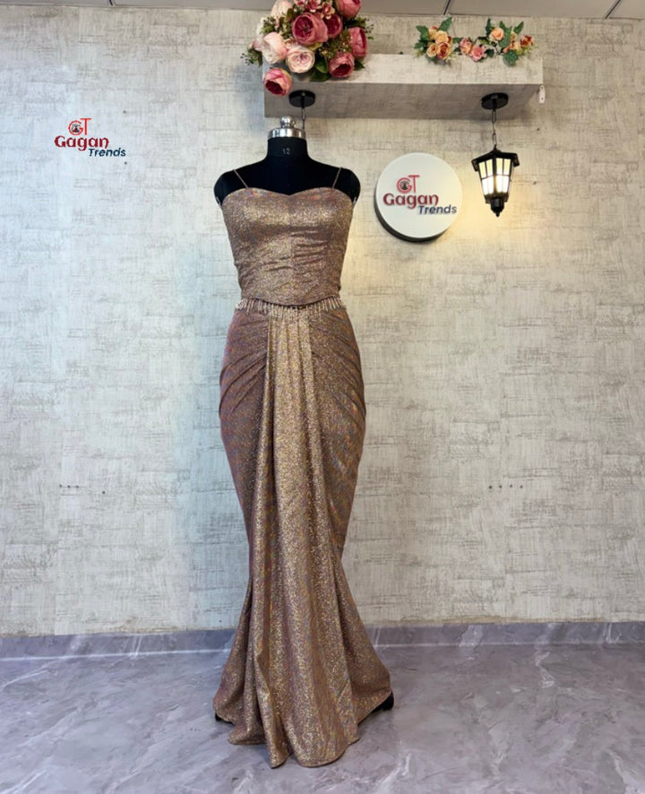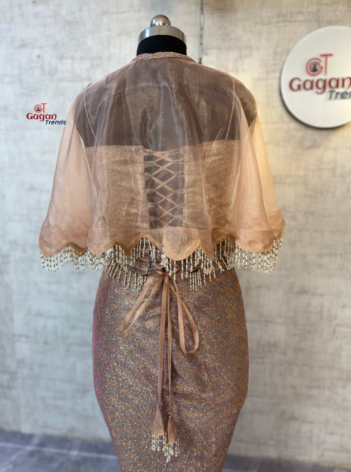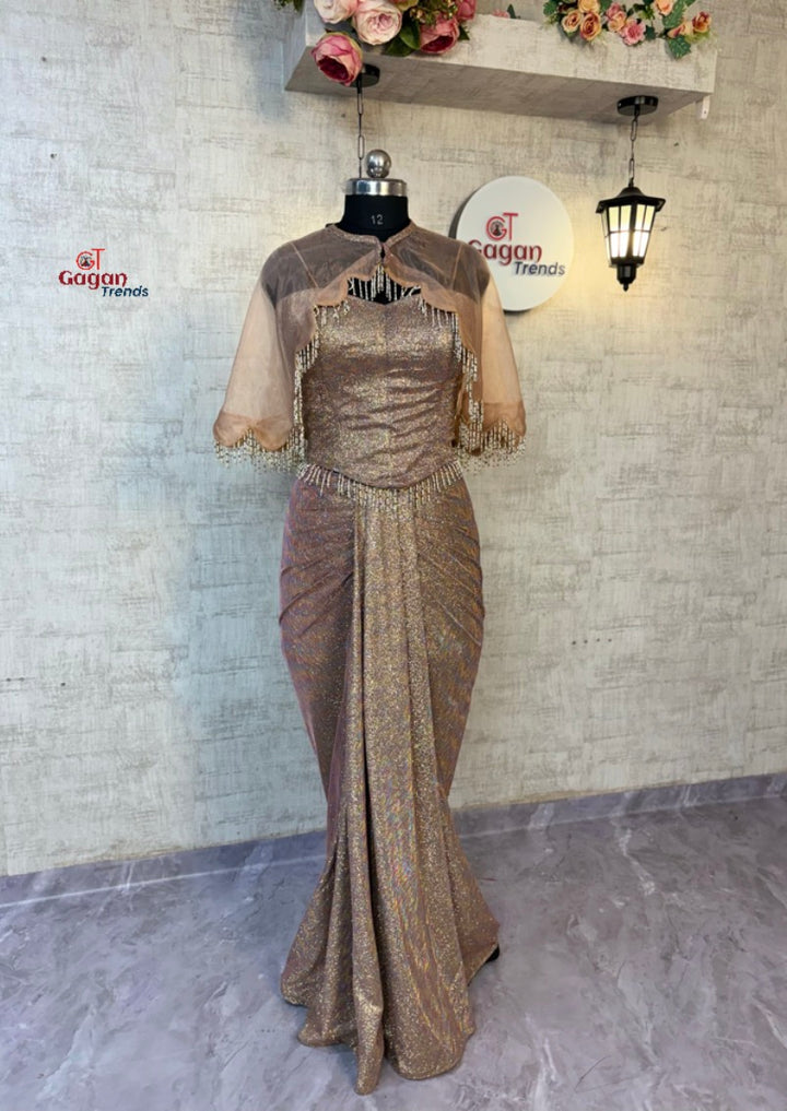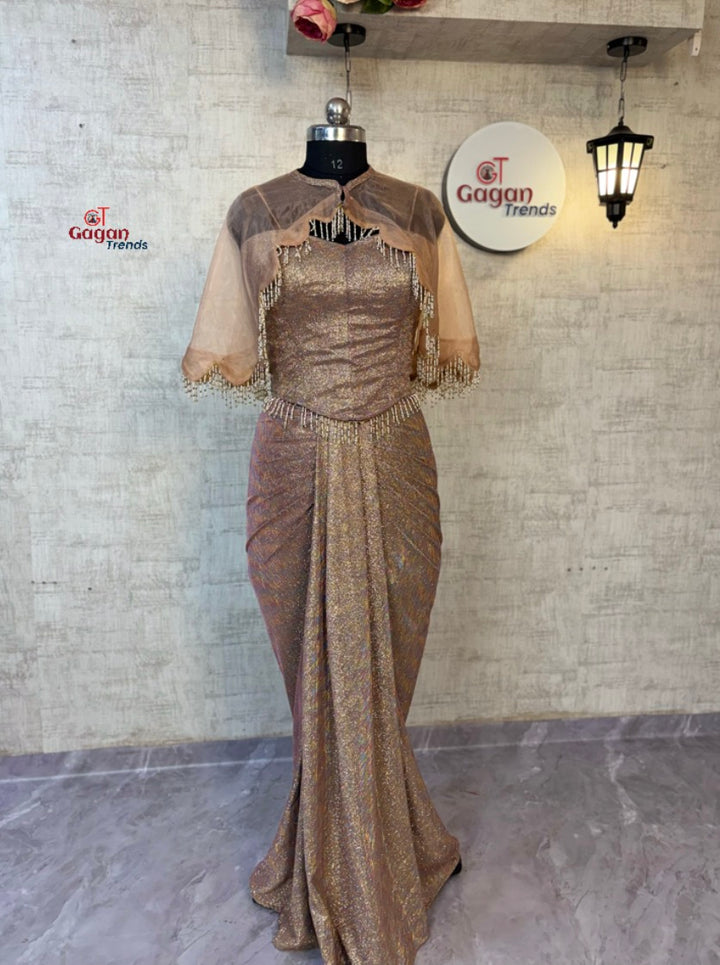 Premium Designer Drape Saree Gown with Shimmer Finish & Cape – Gagan Trends
