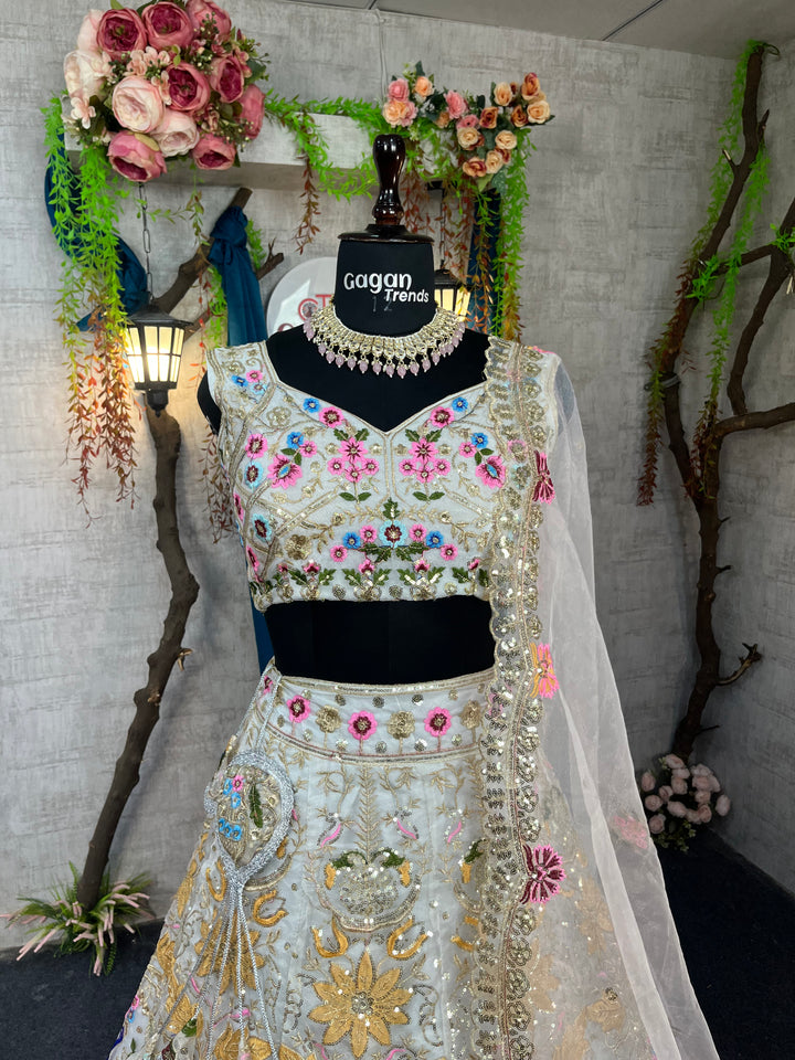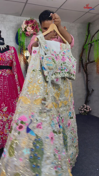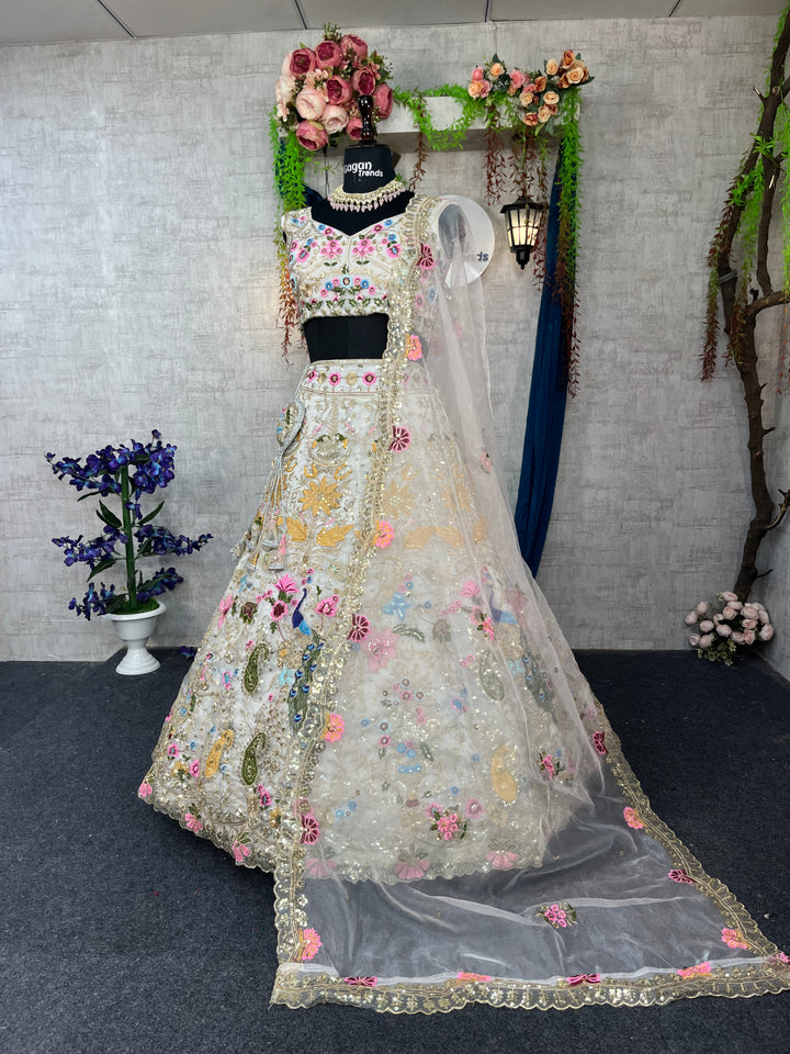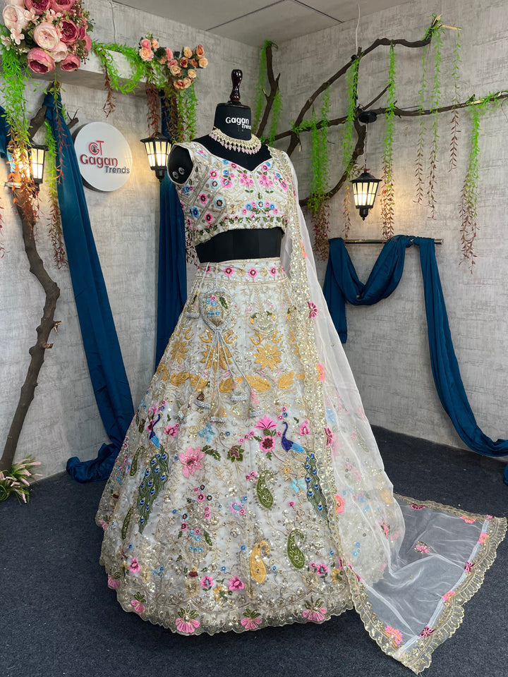 Premium Organza Silk Sequin Embroidered Lehenga with Cut Work Dupatta – Semi-Stitched Designer Set for Women
