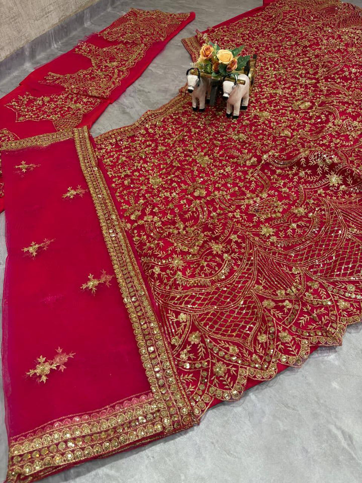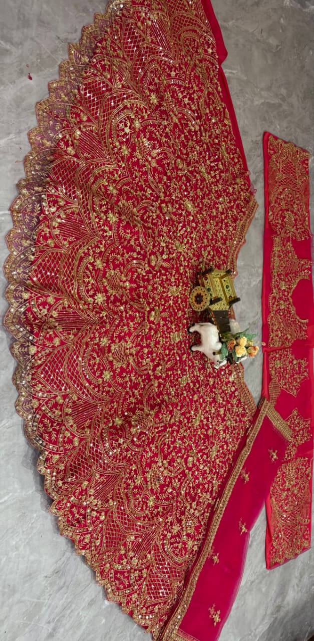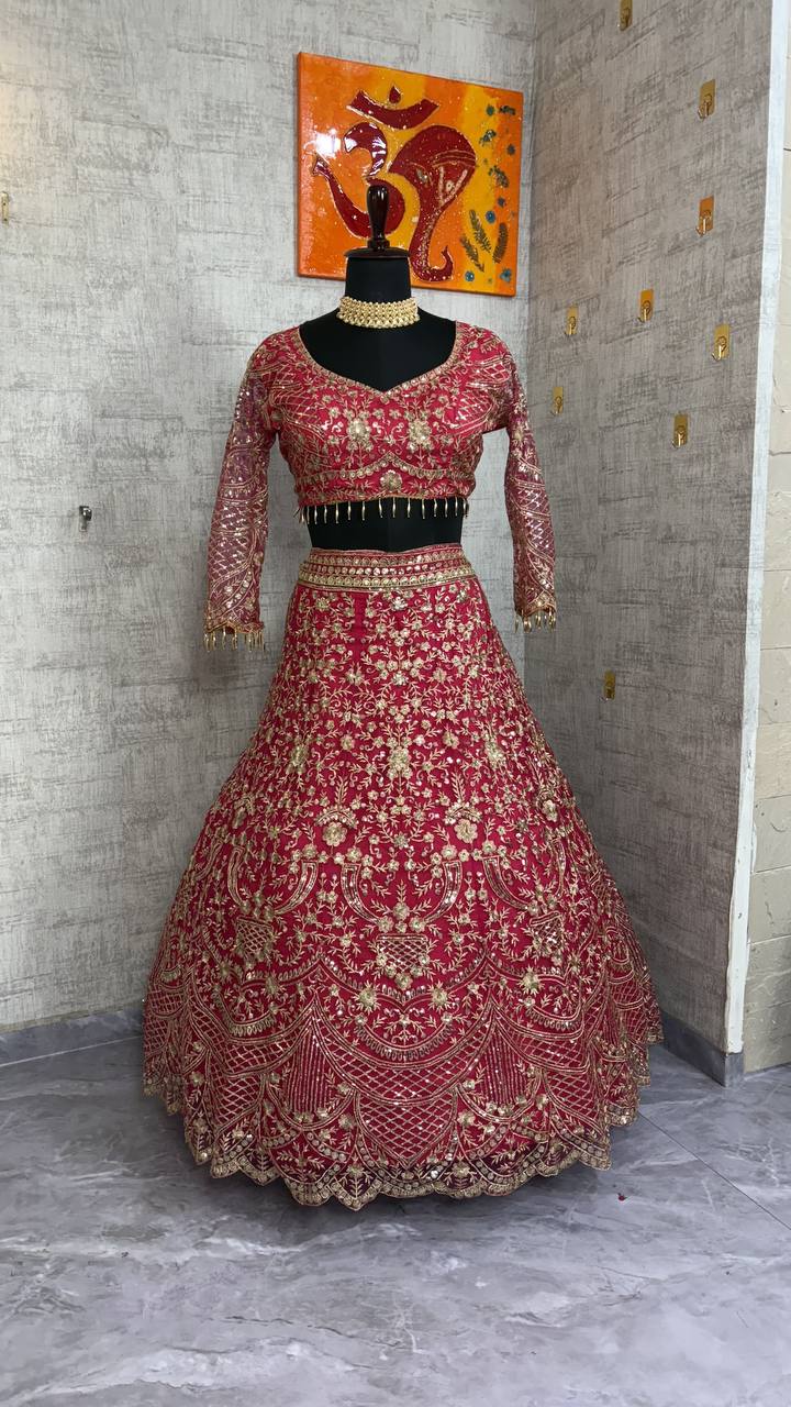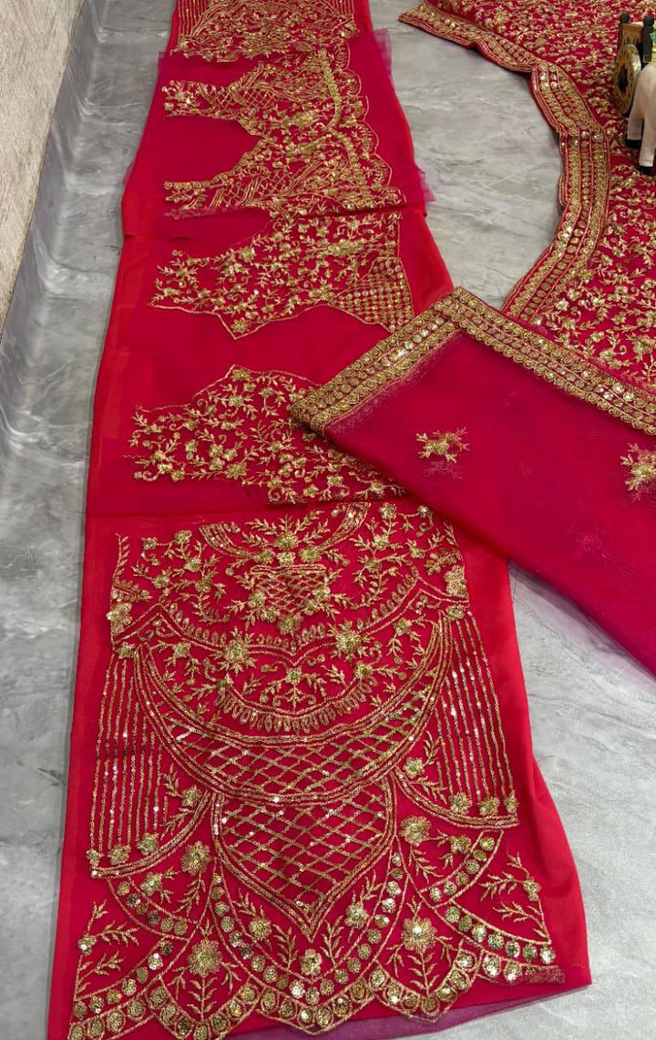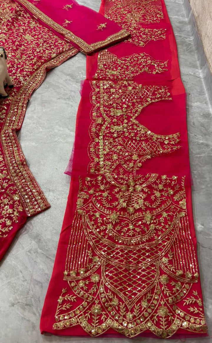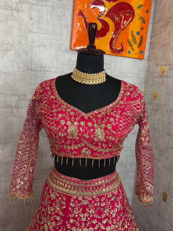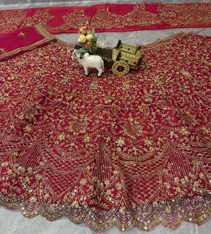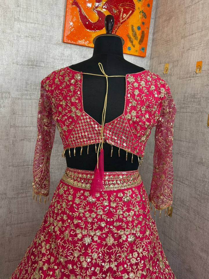 Premium Rani colour Soft Net Lehenga Choli with Embroidery Sequins Work model
