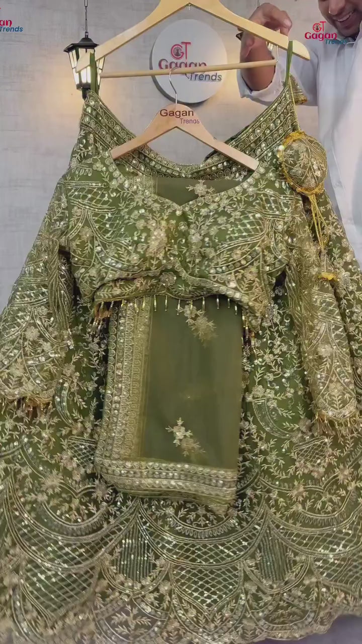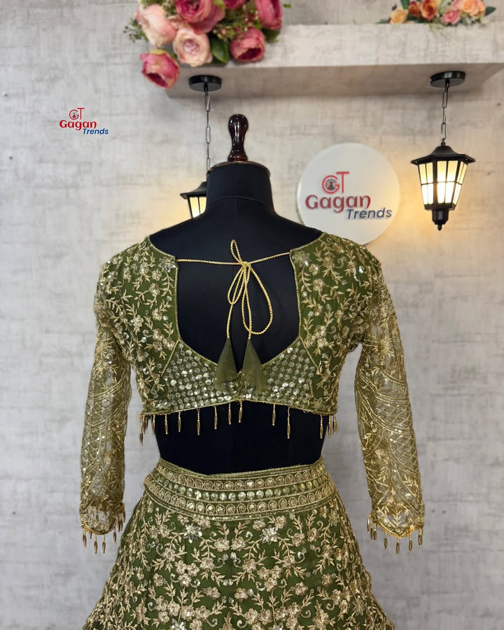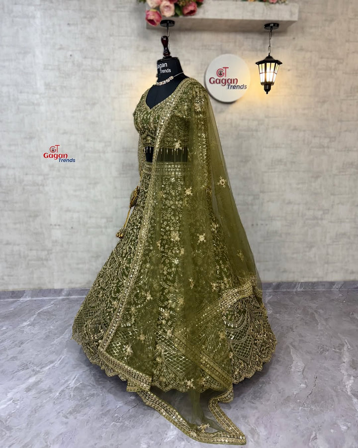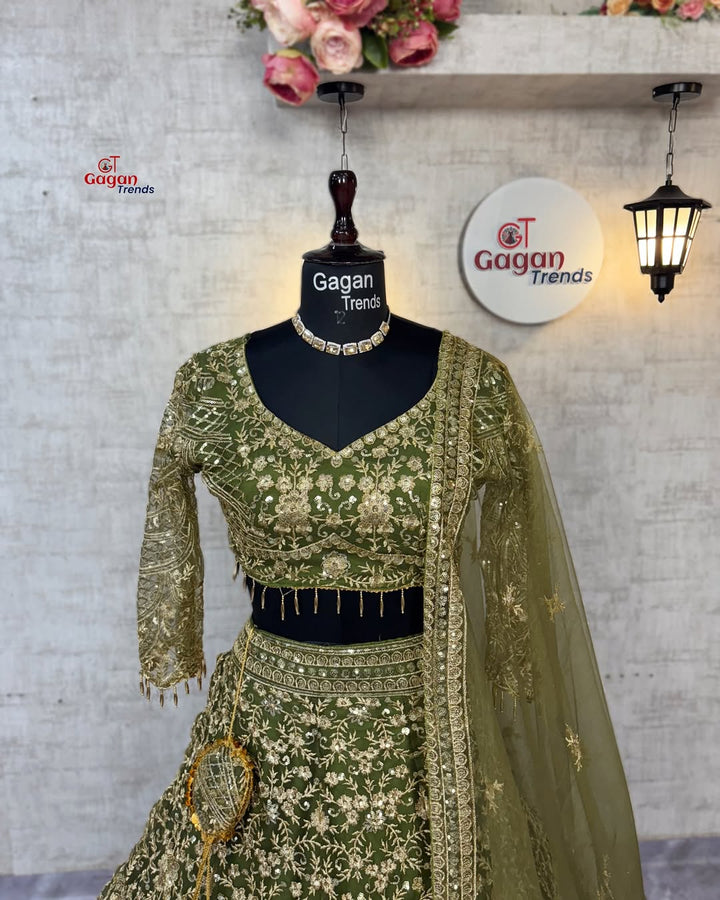Premium Soft Net Lehenga Choli with Embroidery Sequins Work model green