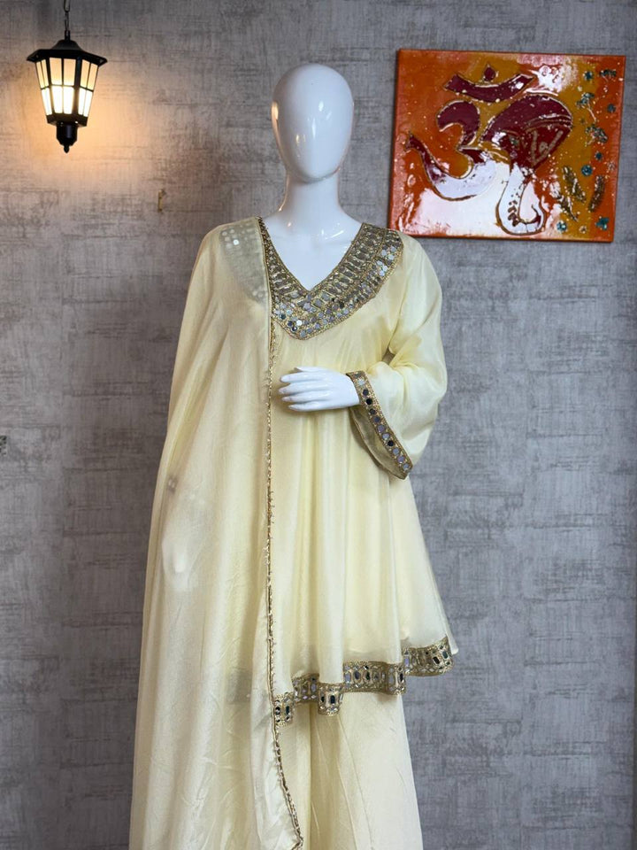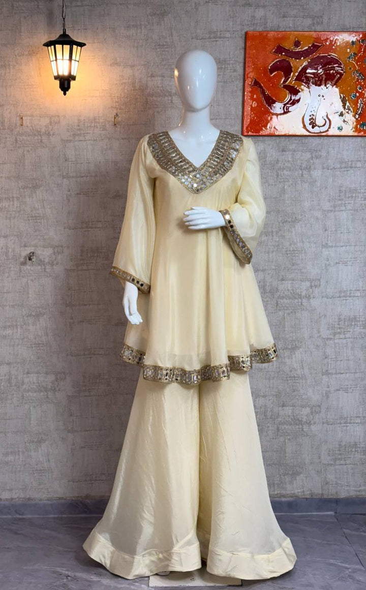 Regal Mirror Work Sharara Set in Cream