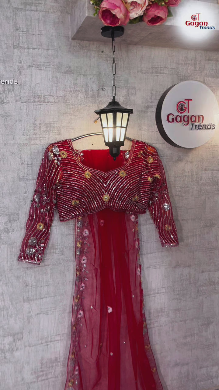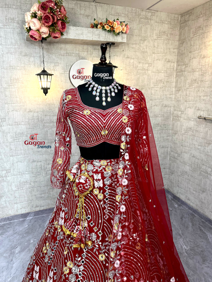 Soft Butterfly Net Lehenga with Real Mirror Embroidery Sequins Work – Semi-Stitched Set