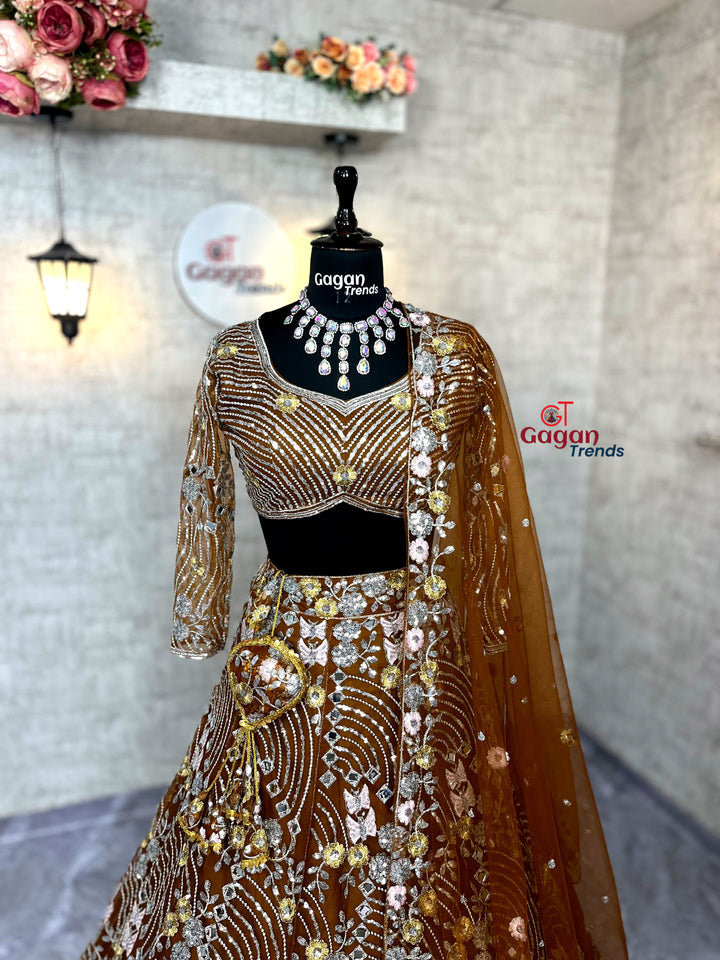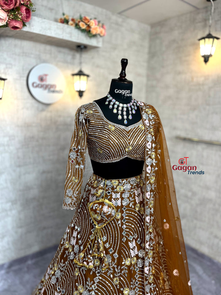 ✨ Dazzling Elegance: Soft Butterfly Net Lehenga with Real Mirror Embroidery Sequins Work