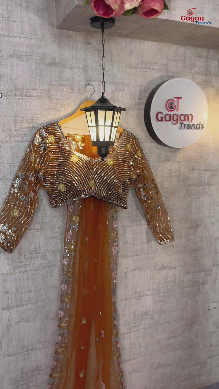 Soft Butterfly Net Lehenga with Real Mirror Embroidery Sequins Work – Semi-Stitched Set
