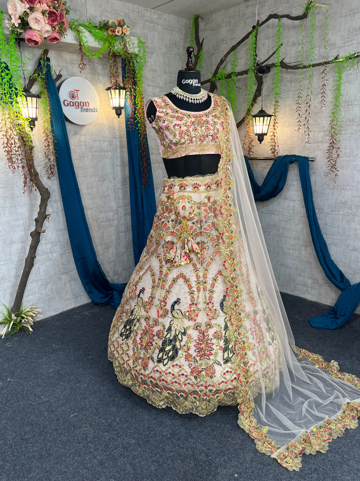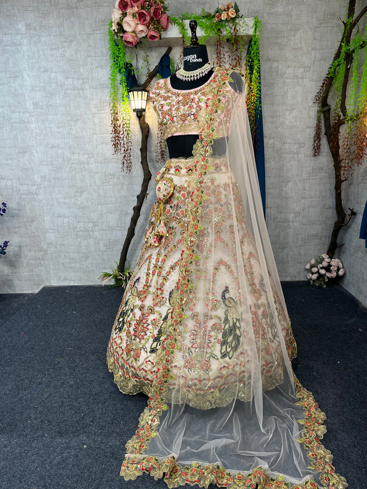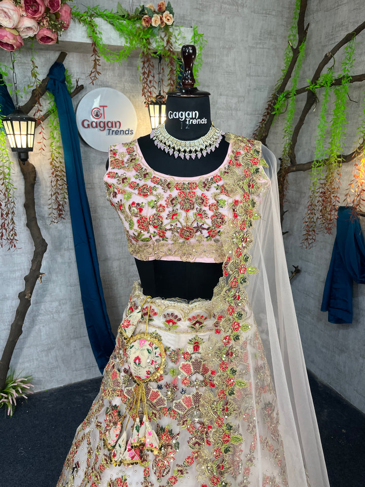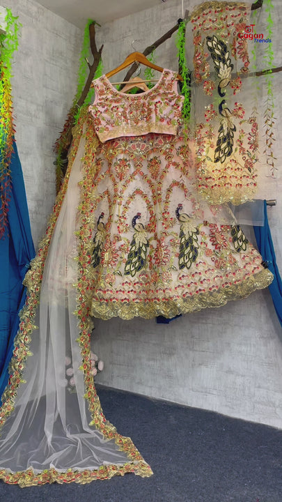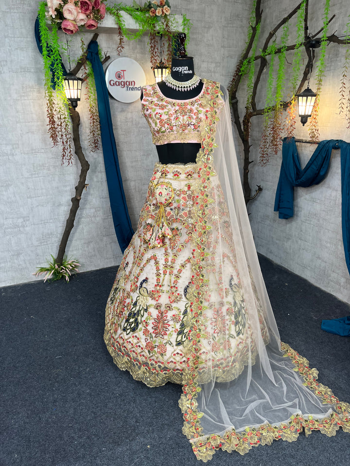 Soft Mono Net Lehenga with Sequins & Pearl Work for Wedding & Festive Wear