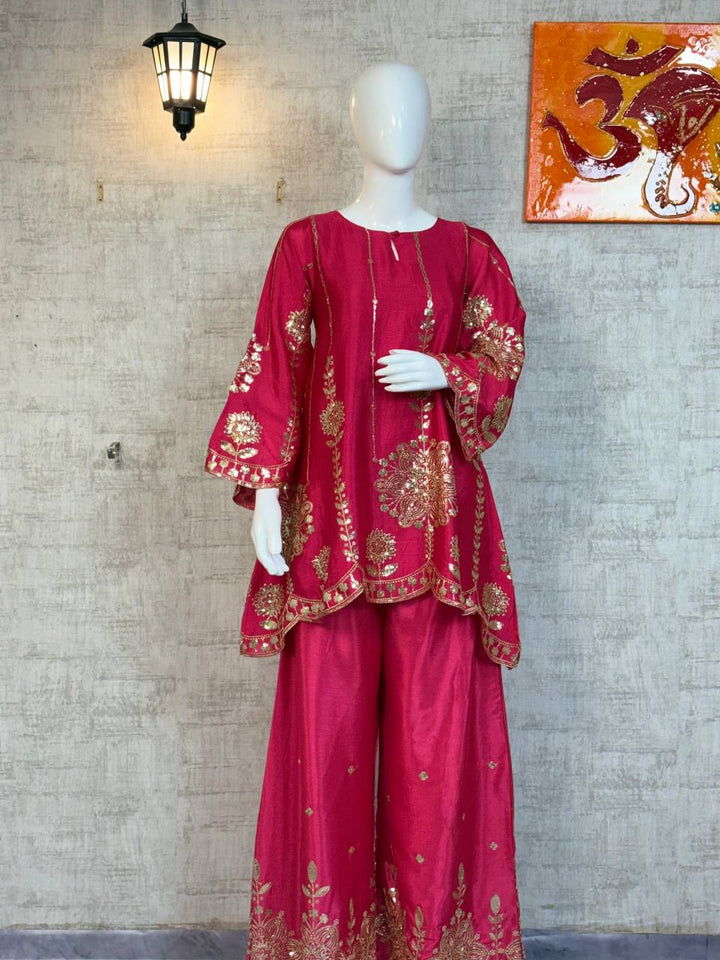 Stunning premium Silk Blend Peplum Kurti and Sharara Suit